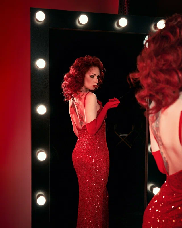— Гримерное место с большим зеркалом, длинным столом и настраиваемым качественным светом