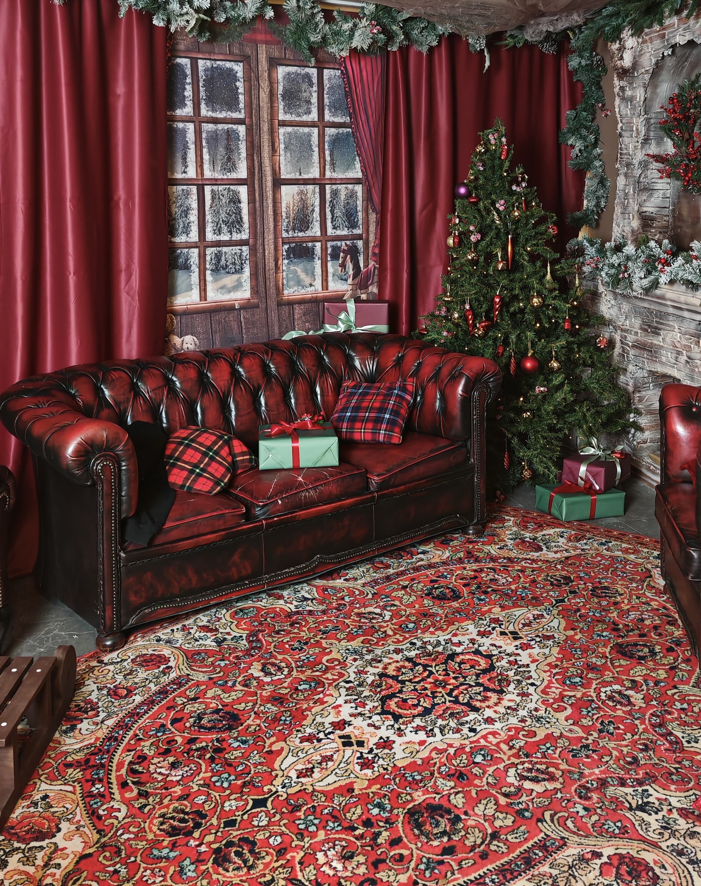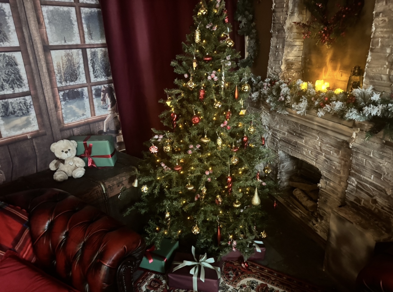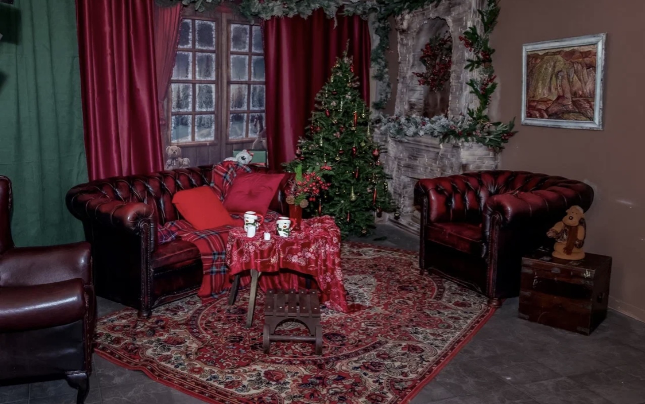 10. Комната с камином и диваном в нг елки