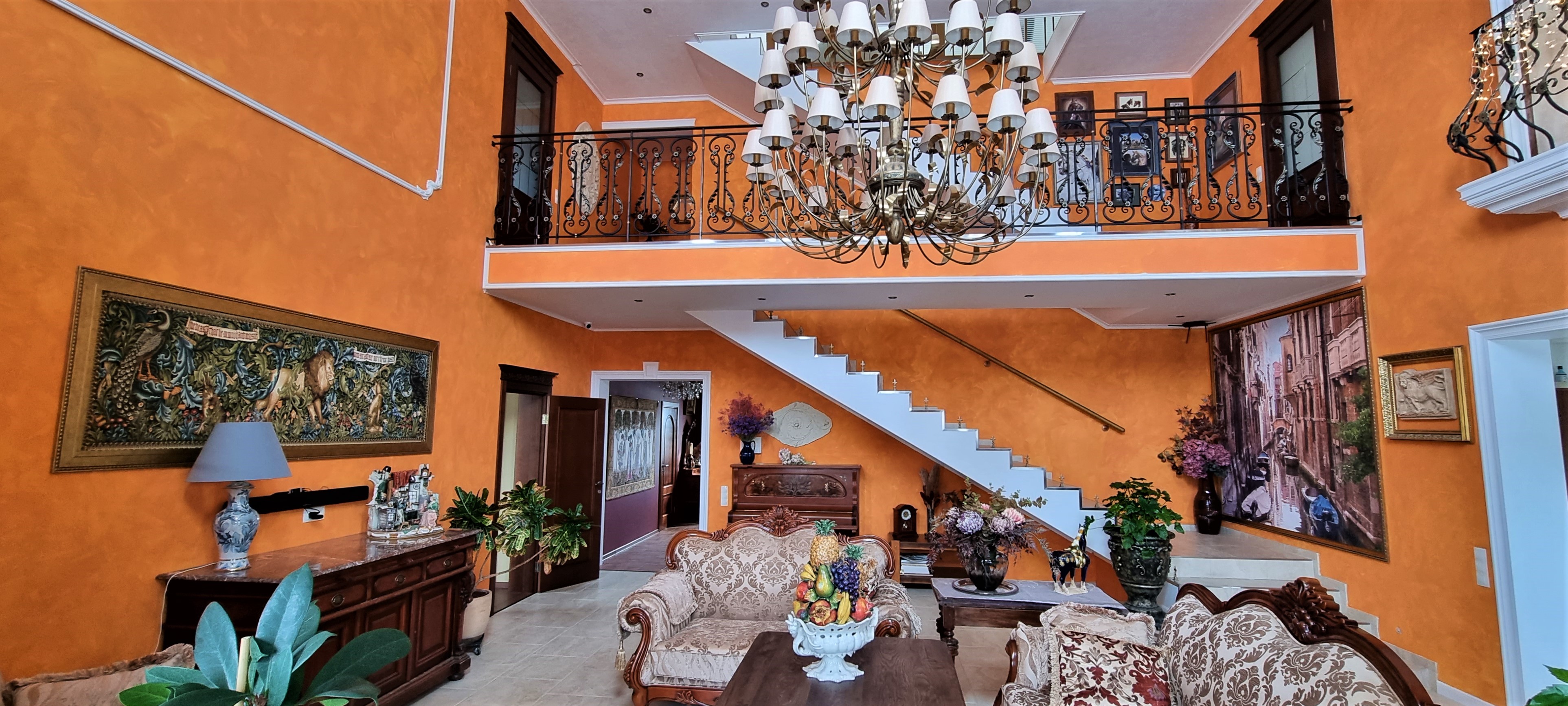 — гостиная 50 метров с пятиметровыми потолками и вторым светом,